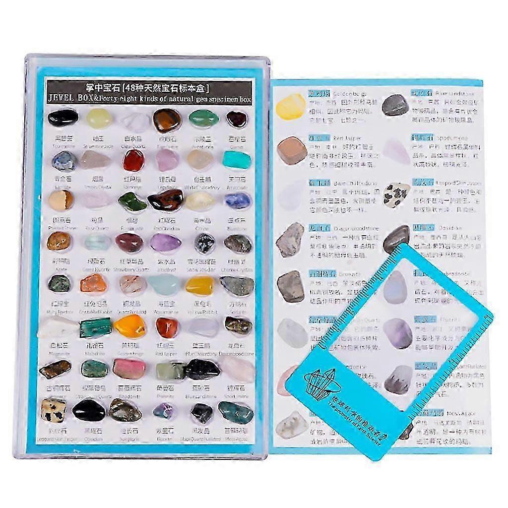 48 Pieces Rock and Mineral Collection Science Educational Information Description Sheet Kids' Gemstone Crystal Kit for Children Boys Birthday Beginner