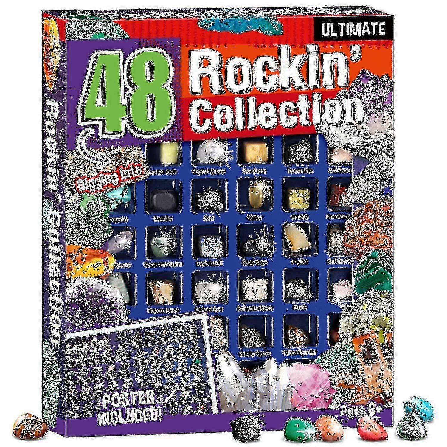 48pcs Natural Crystal Stone Rock & Mineral Education Set For Kids Geology Gem Kit Stem Science Education Toys Christmas Gift
