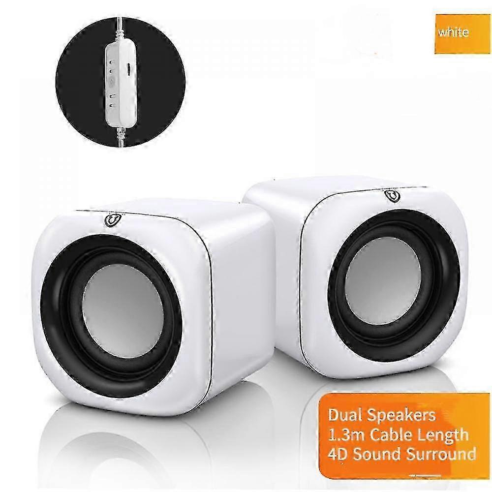 4d Shock Sound Mini Speaker, High Volume Wired Speaker Subwoofer Dual Speaker Dualshock Film Home Notebook Desktop Computer Speakerwhite