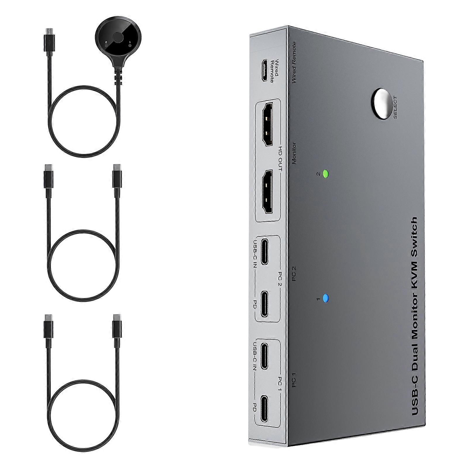 4K 60Hz USB C KVM Switcher Sharing 2 Monitors Between 2 Laptops With 80W Charging 5Gbps Data Transfer for Laptops Multicolor