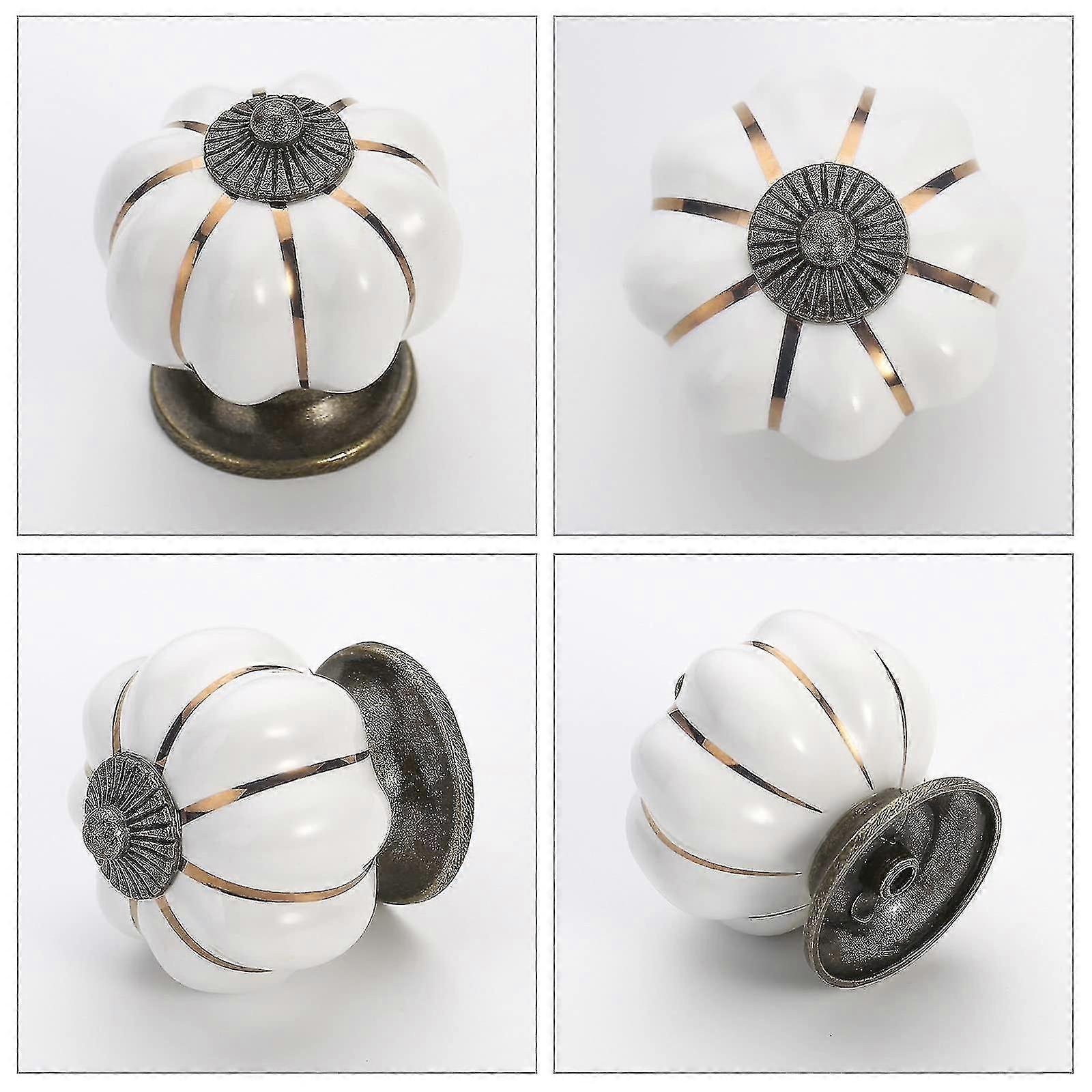 4pcs Ceramic Knobs Vintage Knob Drawer Pumpkin Shaped Pull Handle Furniture Door Cabinet Cupboard Wardrobe Dresser Decorative