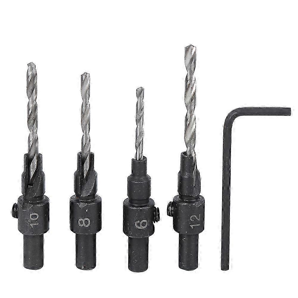 4PCs Countersink Drill Bit Conical Round Valve Rod Wrench Hand Tool Woodworking Accessory