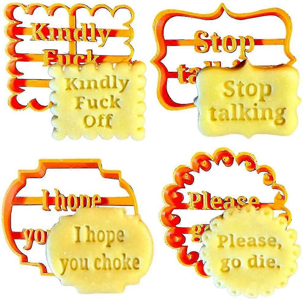 Food Prank For Adults: With The Good Wish Cookie Cutters To Make Your Family Or Friends Laugh And Make People Relax. reliable Quality: These Cookie Molds Are Made Of Food Grade Abs, Support Keep The Shape For A Long Time And Durable, Smoothing Surface And Rolling Edge Perfectly Protect Your Fingers. easy To Use: Just Press This Molds Cutter With Different Size On Any Dough Or Fondant Candy. For Best Results, Biscuits Must Be No Smaller Than 0.5 Cm.easy To Demold And Easy To Clean. Simply Use Your Hand Clean In Warm Water And Dry. widely Use: Make Fun Shapes With Cookie Dough, Fondant, Biscuits, Brownies, Cakes, Or Craft Clay. diy Cookie Molds For Fun Birthday Or Holiday Parties, Also The Best Gift For Friends Who Like Kitchen Diy. package List: 4 X Cookie Molds