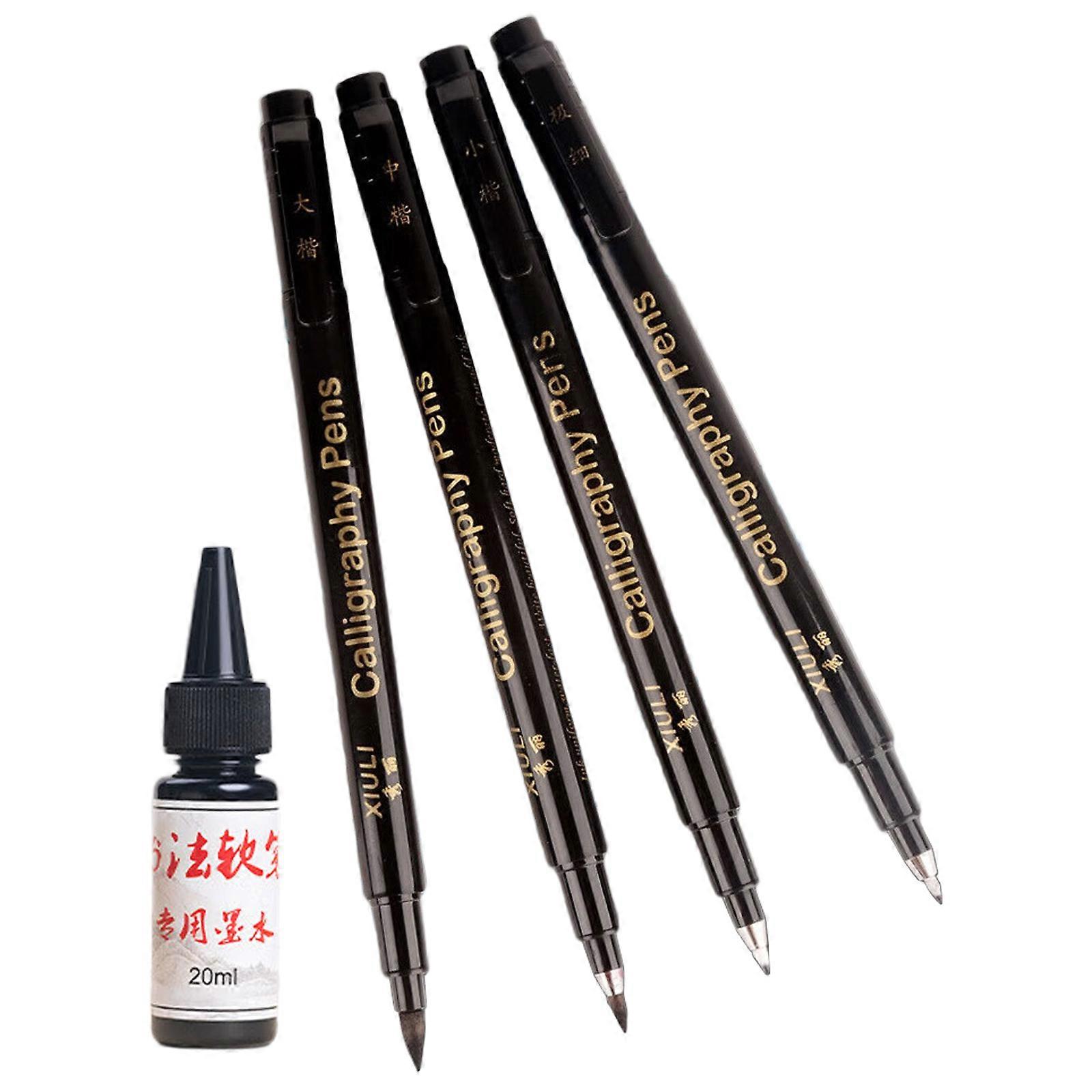 4Pcs Fine Line Drawing Brush Pen Refillable Calligraphy Pen Includes 25ML Inks Bottle for Beginner Calligraphy Practice Multicolor