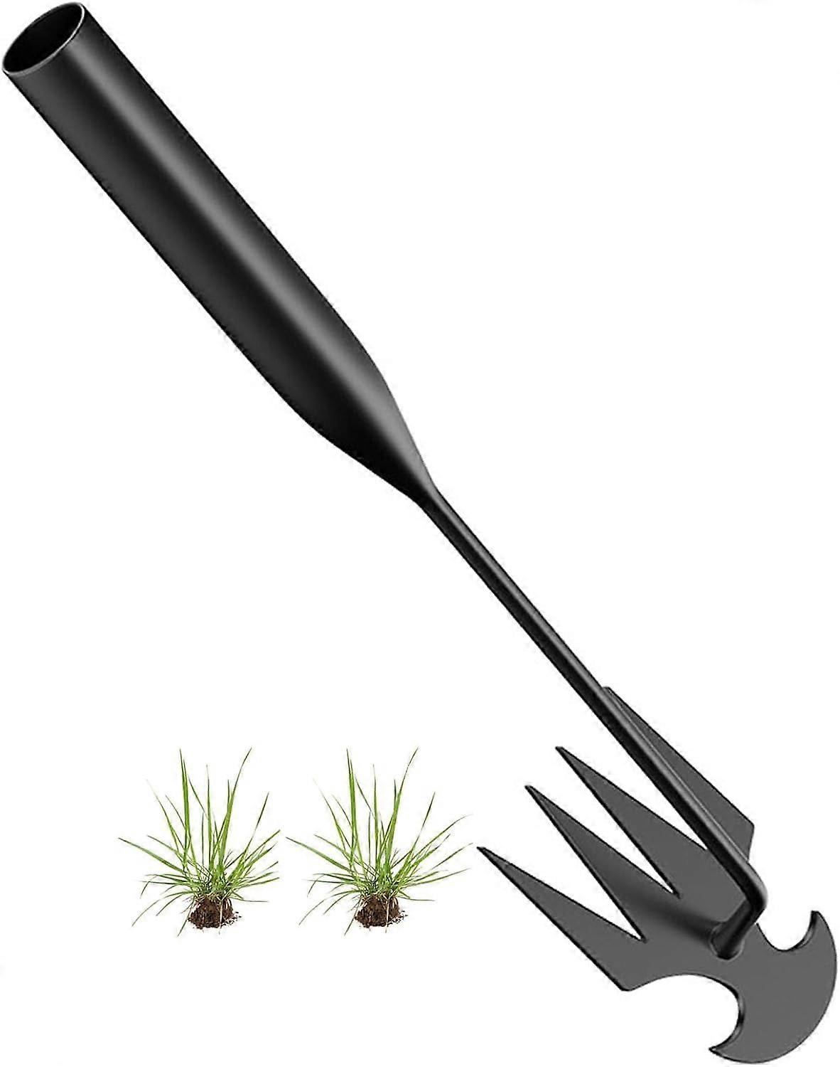 High Quality Material: The weeding tool is made of high-quality stainless steel ensures durability and strength, strong enough to stand up to any digging chopping task,perfect helper for agricultural work such as weeding, digging and shoveling.two weeding tools randomly send one. Designed: Dual-purpose weeder weeding tool ergonomically weeder allows you to remove weeds easily, the extended design handle increases the range of use, and its pointed tip can easily handle narrow spaces, suitable for many environments. Precise Weeding: Weeding tools for garden is very simple to use, when pulling weeds, insert the 4 tines into the soil, the root of the grass should be as close to the bottom of the groove as possible To facilitate the removal of weeds in corners and narrow spaces. At the same time, the 4-tine weeder also loosens the soil surface. New Weeding Artifact Uprooting Weeding Tool:Our uprooting weeding tool is the perfect helper for agricultural work such as weeding, digging and shoveling. Its pointed tip handles tight spaces with ease, so say goodbye to manually pulling those pesky weeds! Wide Range of Applications: The hand weeder tool puller with handle can easily handle weeding and digging tasks in the garden, yard or farm, or growing flowers and vegetables to make your garden beautiful, it's the perfect companion for gardening and farming. Size: length 30cm.