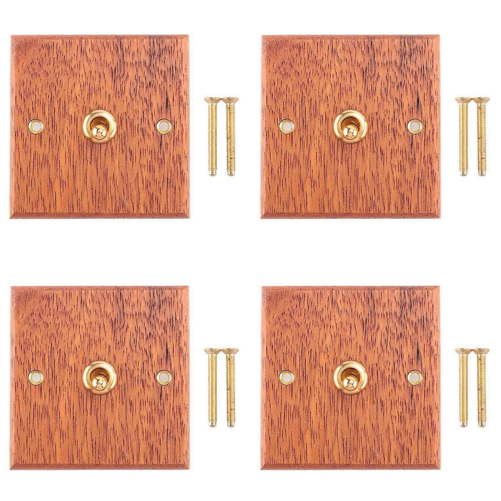 4X 86 Type Solid Wood Panel Switch Wall Light Retro Brass Toggle Switch Wood Grain Electrical Switch Socket 1- Switch