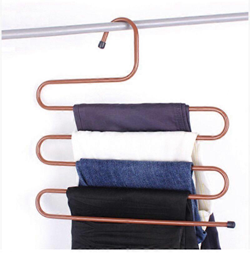 Make the most of a small space to organize the clothes you need and wear frequently. Keep your pants organized and in one place in tight spaces with this handy S-shaped hanger. It is an effective and useful addition to any wardrobe. Finally, it's the perfect solution when your wife or girlfriend decides you need more closet space! feature: Ideal solution for small spaceshang some pantsKeep your pants organizedSimple installation: just hang on the rackMade of durable alloy Specification: Color: black white brownMaterial: aluminum alloyProduct Dimensions (L x W): 36 x 36 cmGross weight: 300g
