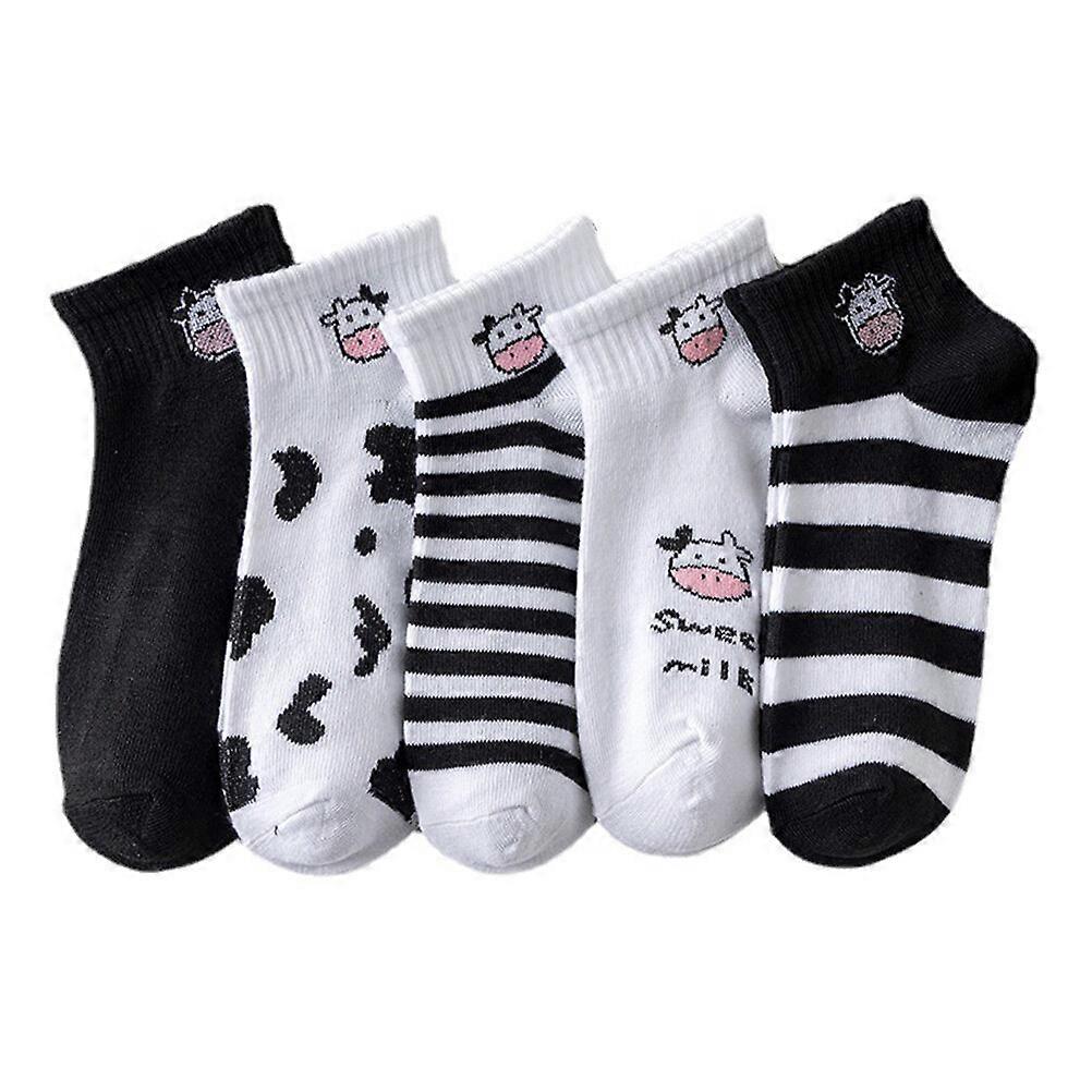 5 Pairs Spring Short Socks Cartoon Cow Socks Students Socks Fashion Costume