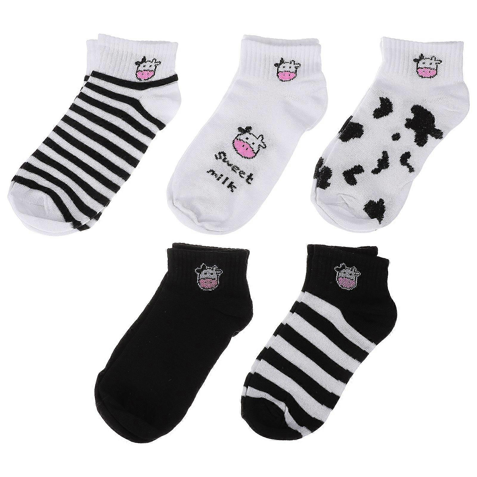 Description They are fashionable socks made of quality materials that last a long time. They are manufactured with chic and exquisite workmanship, pretty and soft. It is not only the perfect choice for decoration, but also can be a nice gift for others. Features - Color: black, white - Material: Cotton - Size:20.00X9.00X0.40cm/7.86X3.54X0.16inch - Sweet cartoon cow pattern design, present a adorable look fit for most kids, teens and girls to wear. - An amazing gift for your kids friends or family on birthday, holiday, festival, Christmas, new year, etc. - These cotton socks can protect you from the cold weather, very comfortable to wear. - Excellent craft and workmanship, carefully down to every detail to give it a lovely look. - Suitable to wear on spring, summer and autumn. Breathable and provide a comfortable fit.Package list: 5 x pairs of socks