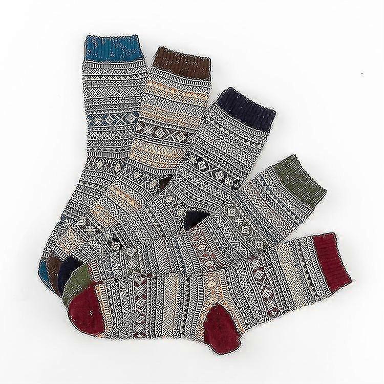 5 Pairs Mens Socks Wool Thermal Warm Knitting Socks Ethnic Style Thermal Socksfor Winter Christmas Gifts For Men