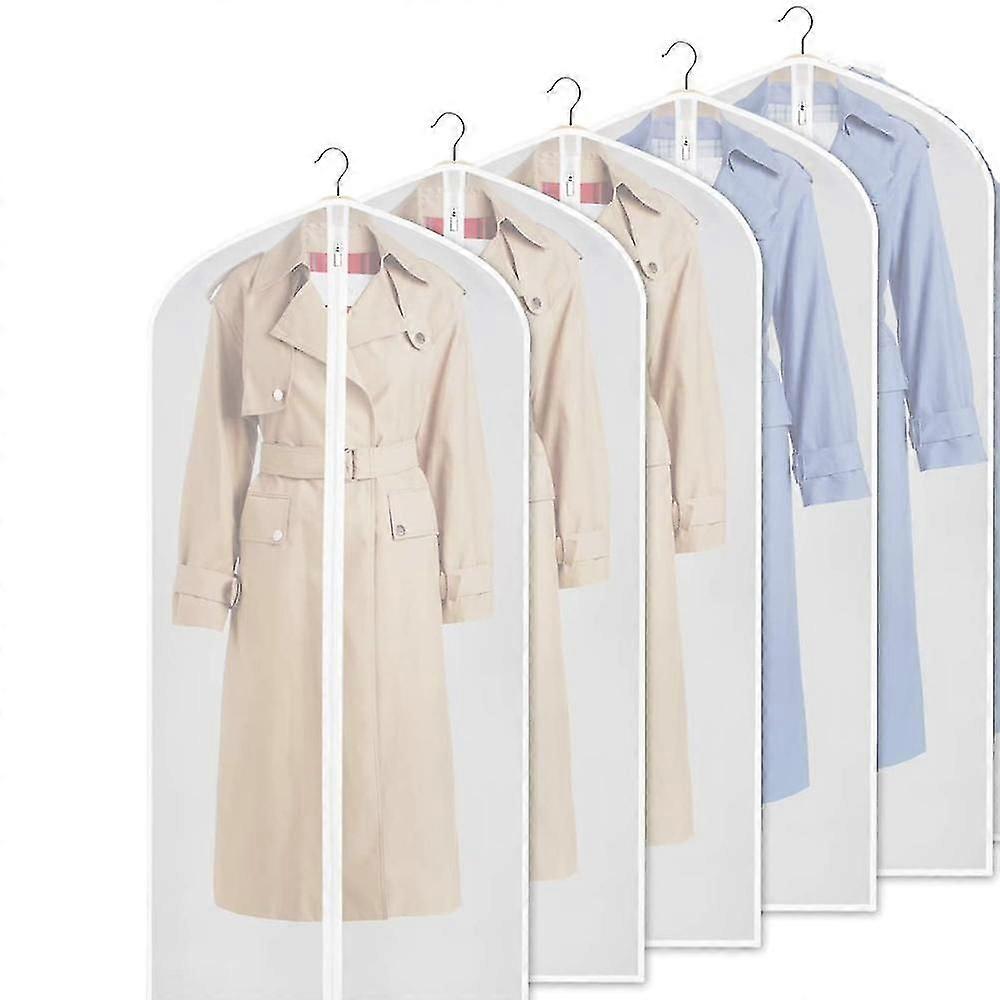 5 Pack Clear Garment Bag For Storage Dress Bag 55" Coat Bag With Full Length Zipper For Wardrobe Storage