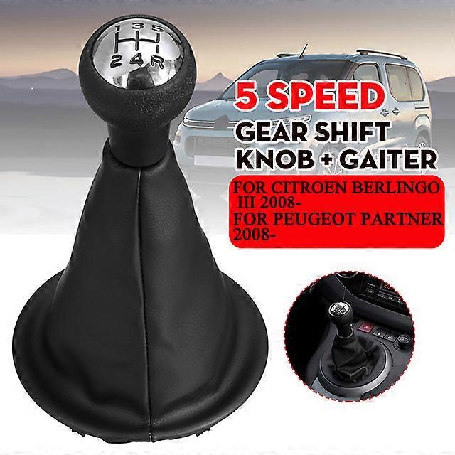 5 Speed Gear Shift Knob+Gaiter For Citroen Berlingo III For Peugeot Partner 2008-2021 PU Leather Car Interior Accessories