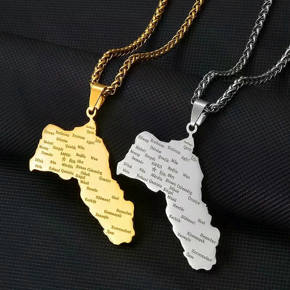 5CM Big Size Charms Kurdistan Pendant Necklaces Women Men Silver Color/Gold Color Kurdish Jewelry @270621