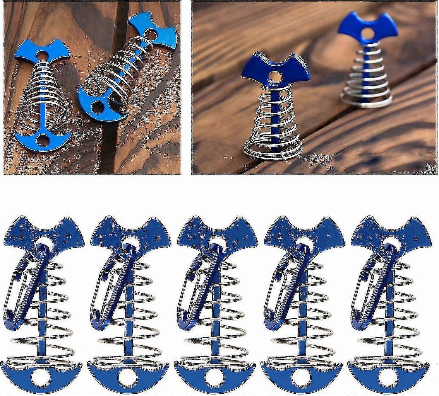 5-Pack Windproof Tent Stakes, Durable Aluminum Alloy Fishbone Design with Spring Buckle, Portable Camping Rope Anchors