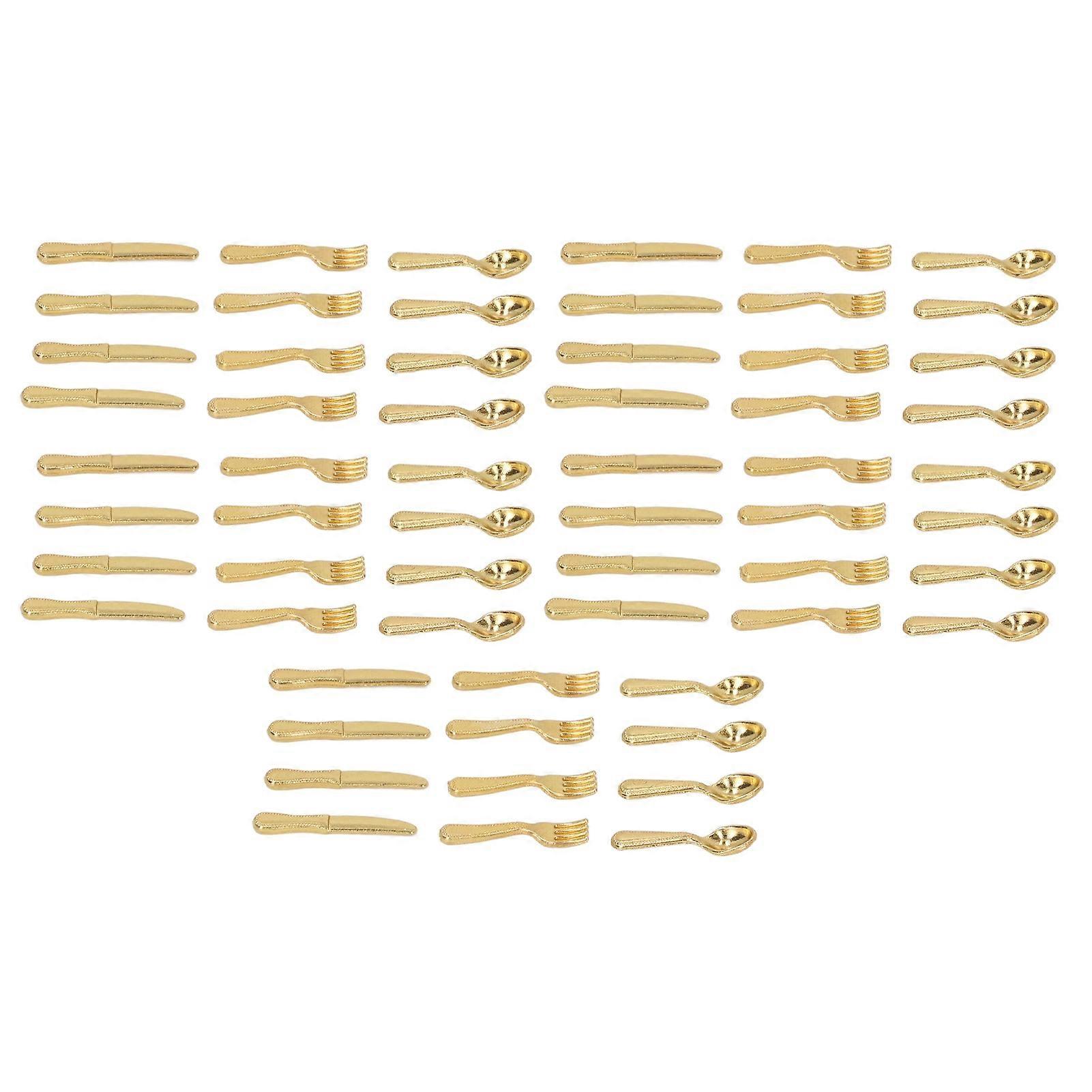 5 Packs Miniature Knives Forks Spoons 1/12 Miniature Serving Tool Dinner Set for Dollhouse Kitchen Supplies Gold