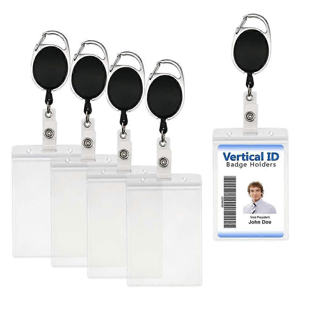 5 Pack Retractable Badge Holders with ID Card Holders - 5 Badge Reels w/Carabiner Clip - 5 Vertical Name Badges