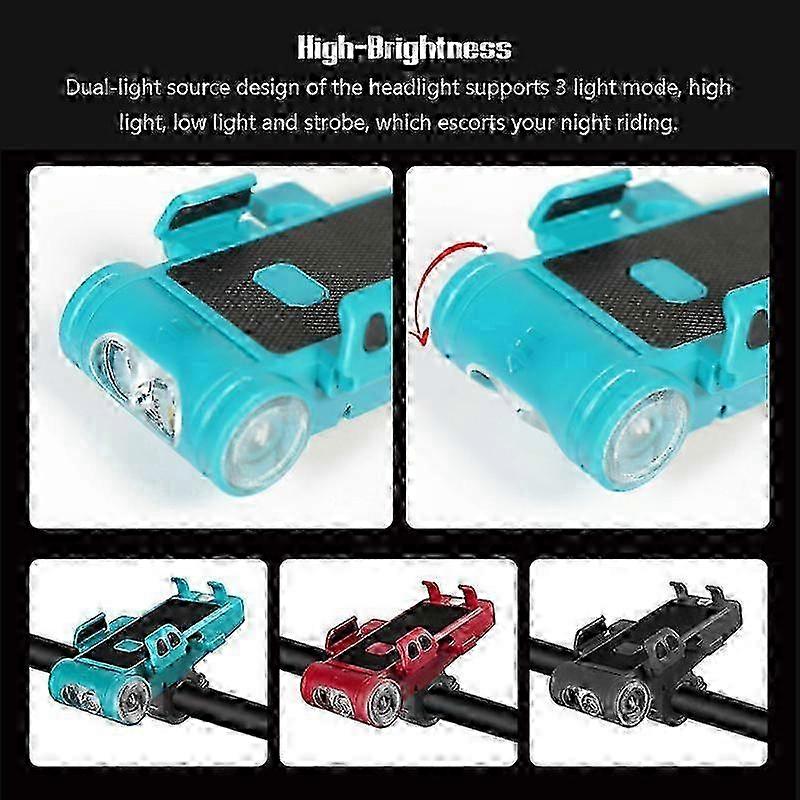5 in 1 Bike Lights 3500mAh Mountain Bike Front Headlight USB Rechargeable Waterproof with Phone Holder Power Bank Bike Horn Fog Light