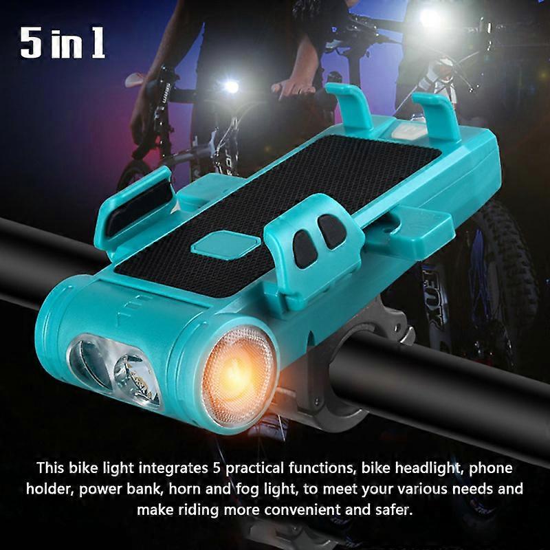 5 in 1 Bike Lights 3500mAh Mountain Bike Front Headlight USB Rechargeable Waterproof with Phone Holder Power Bank Bike Horn Fog Light