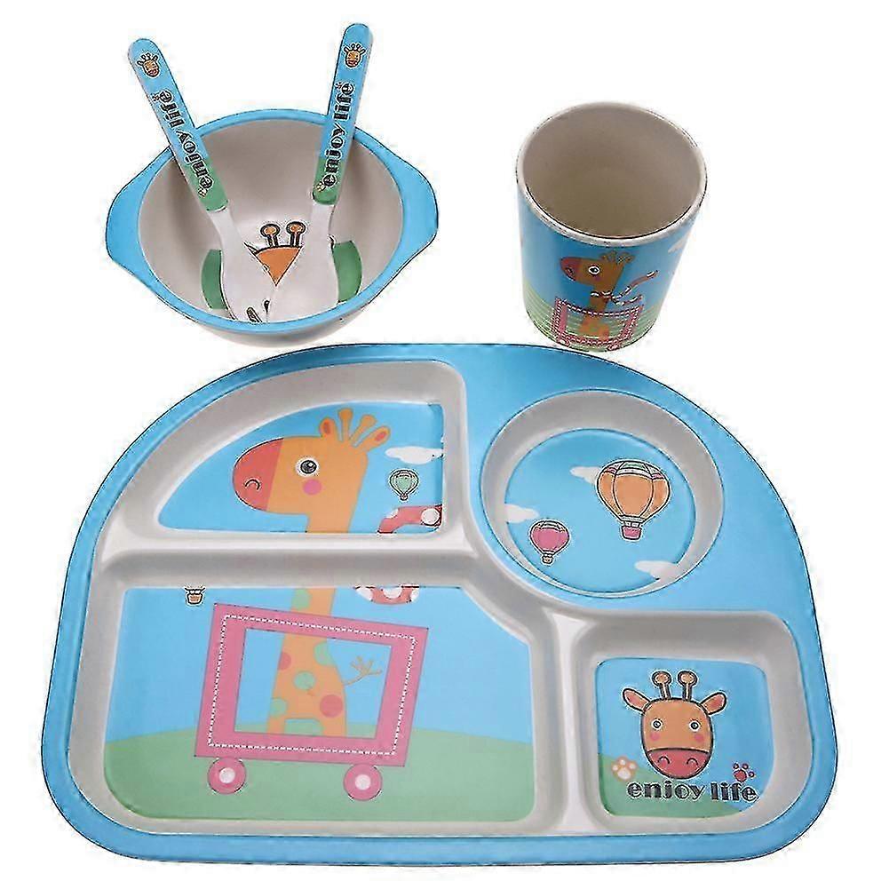 5 Piece Bamboo Dinnerware For Kids, Toddler,cute Animal Plate And Bowl Set,great Gift For Birthday, Baby Shower