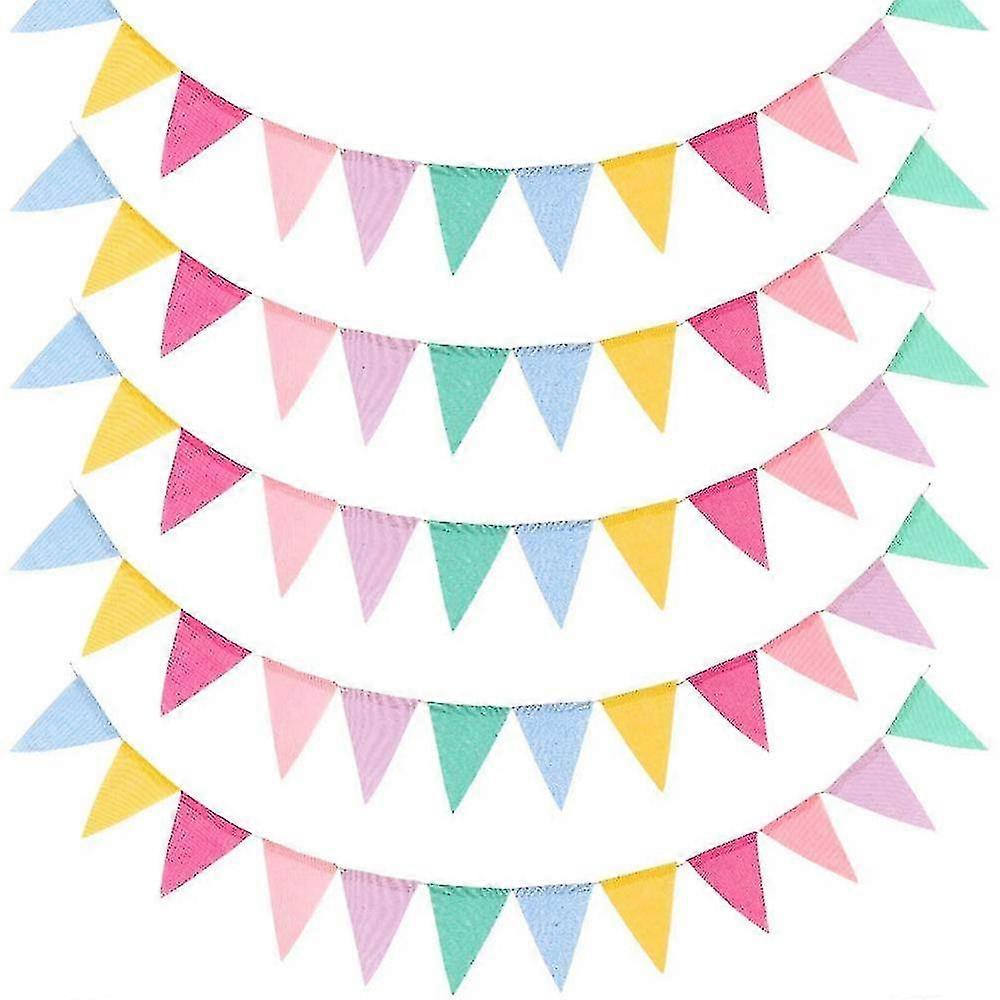 5pcs Multicolor Flags Imitated Burlap Bunting Banner Pastel Rainbow Decor Fabric Triangle Flag