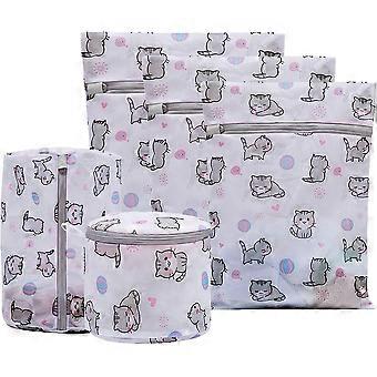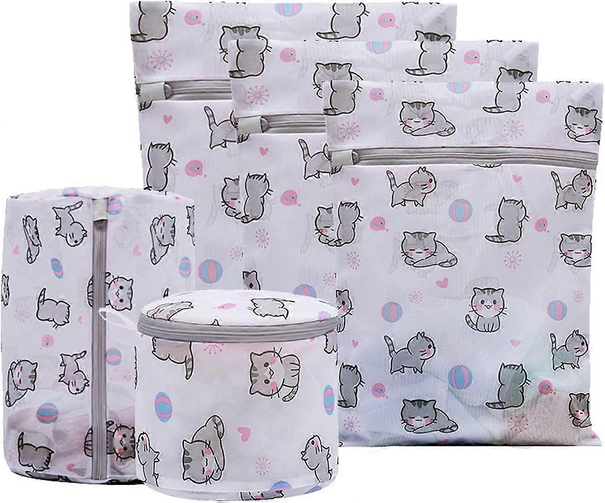 5pcs mesh laundry bags,delicate laundry bags,cat printed laundry bags (not including clothes)