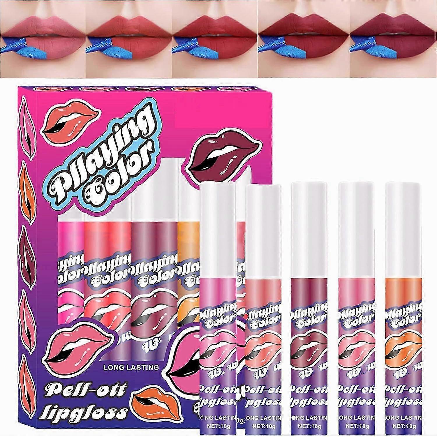 5PCS Peel Off Lip Stain Lip Gloss Set, Matte Tattoo Colour Lip Tint Set, Waterproof & Long Lasting Lipstick Set, Highly Pigmented Non-Stick Lip Gift