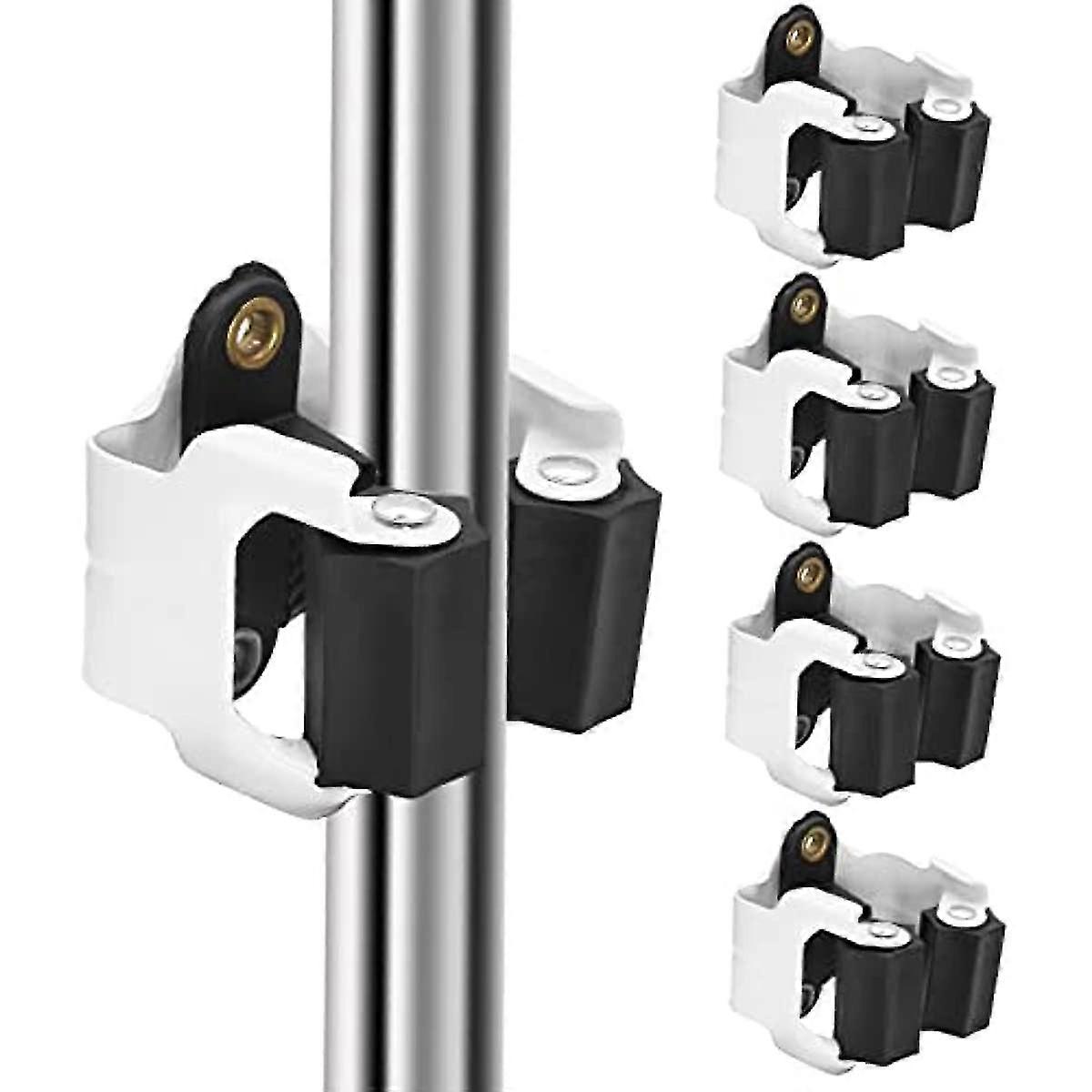 5pcs Wall Mount Broom Mop Holder, Bathroom Mop Hanger Wall Mounted Mop Clip With Screws For Garden Bathroom Kitchen - White & Black