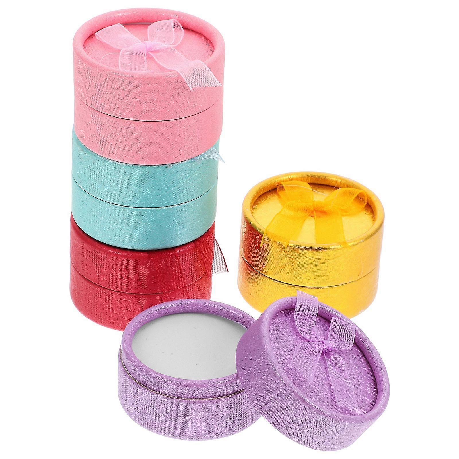 5pcs Round Shaped Jewelry Finger Ring Earring Ear Studs Gift Packing Boxes Storage Cases - Size S (Random Color)
