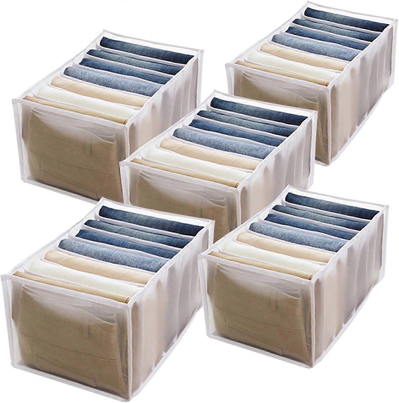 5 PCS Jeans Wardrobe Clothes Organizer Pants Storage for Closet Drawer Best Folded Clothes Storage Containers Organization Storage Box for T-Shirt Jea