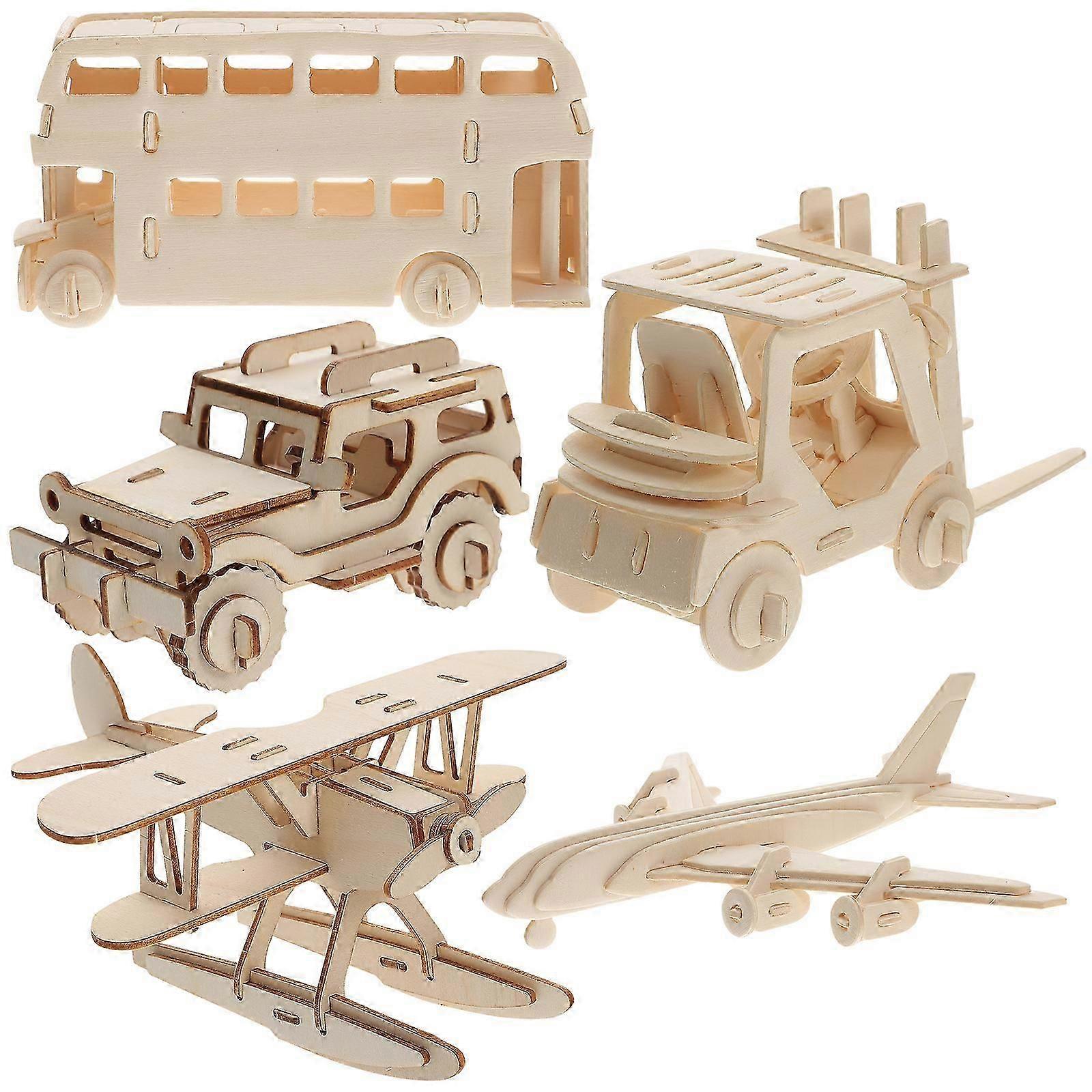 5pcs Wooden Airplane Model Wood Bus Car Model Wood Forklift Handicraft Toys