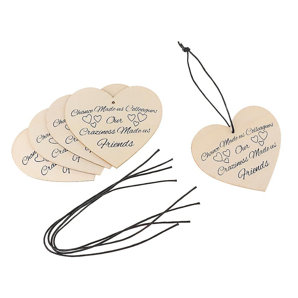 5 Pieces Letters Printed Heart Shape Wooden Tags Ornaments Colleague Friend