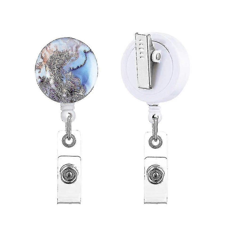 5 Pcs Badge Reel Clips, Retractable Keyring Badge Holder Clip Marble Pull Badge Reels With Id Card Belt Clip For Office Student Teachers Nurse
