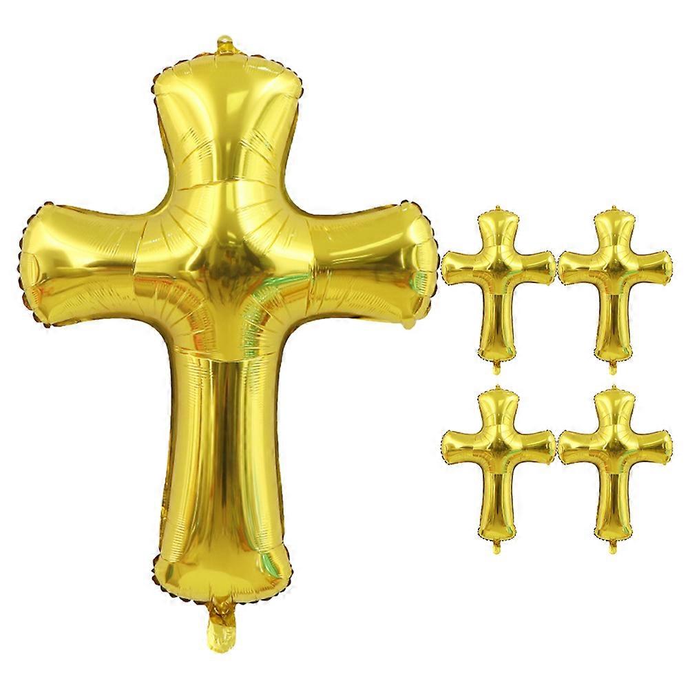 5Pcs Cross Shaped Aluminum Foil Balloon Baby Shower Balloon Decor Baptism Cross Balloon Prop
