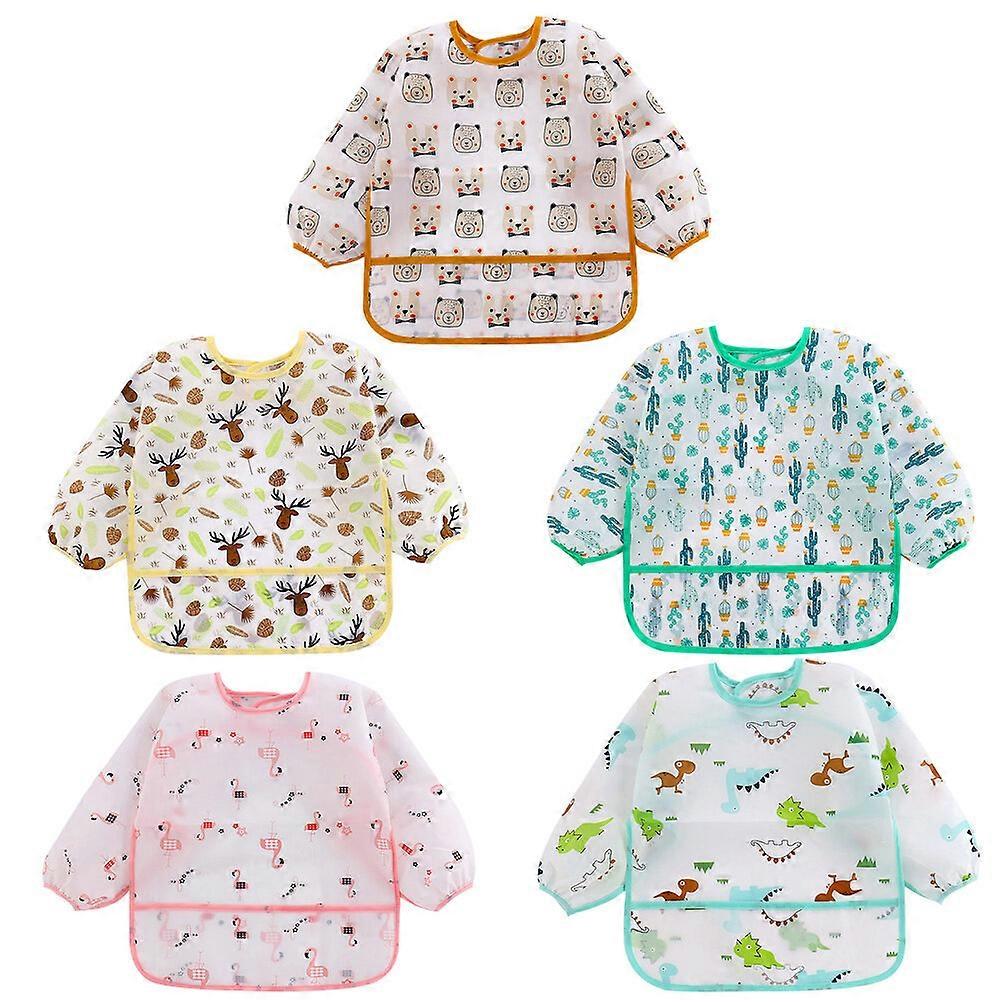 5 Pcs Long Sleeved Baby Bibs Waterproof Sleeved Bib Practical Baby Smock