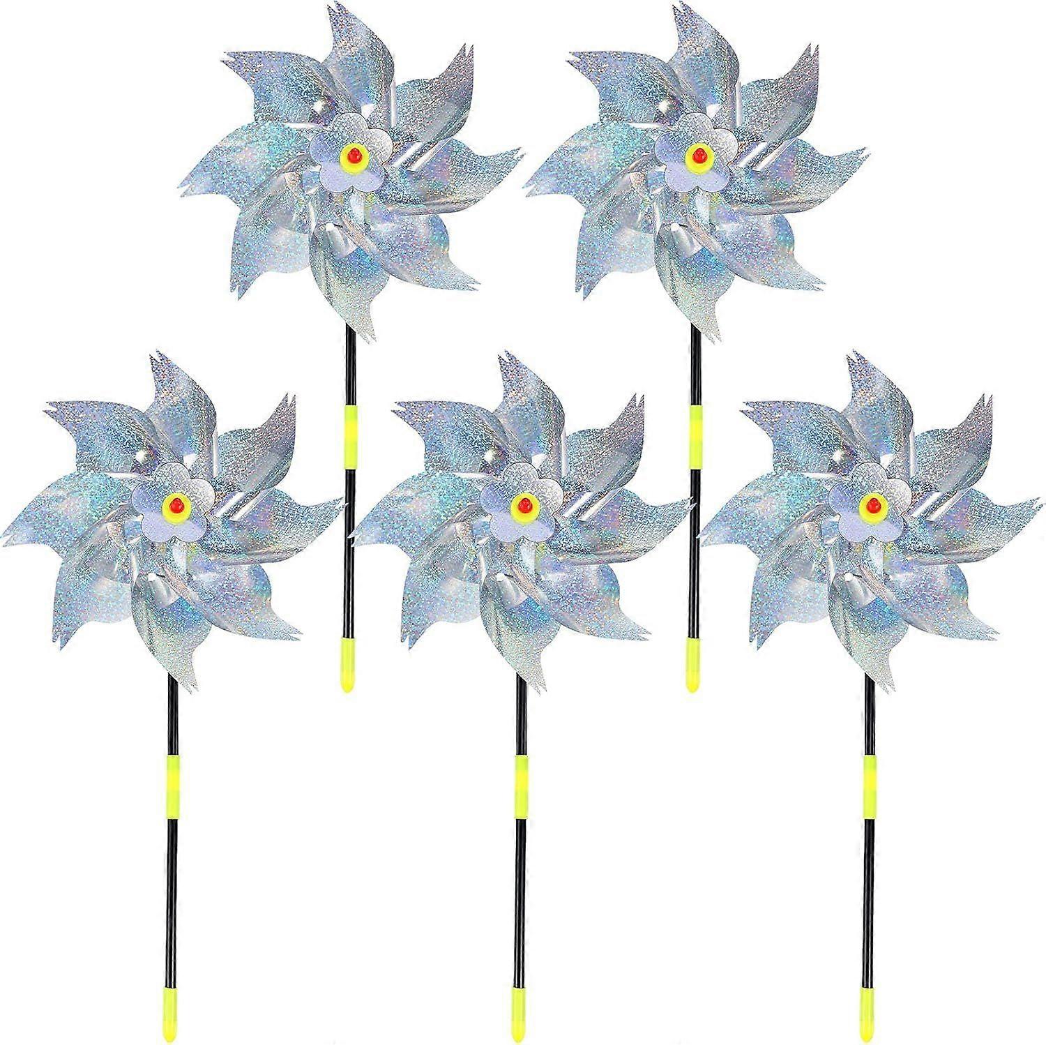 5 Pieces Reflective Pinwheels Bird Repellent Pinwheels Reflective Pinwheels with Stakes Bird for Garden Yard Patio Farm (Silver)