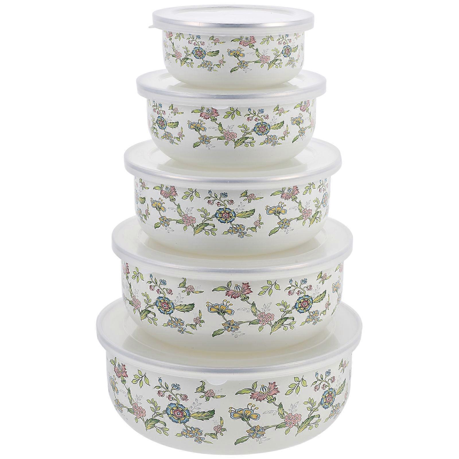 5Pcs Food Canisters Mixing Bowls Sealing Cover Enamel Salad Bowl Set Multiuse Bowls