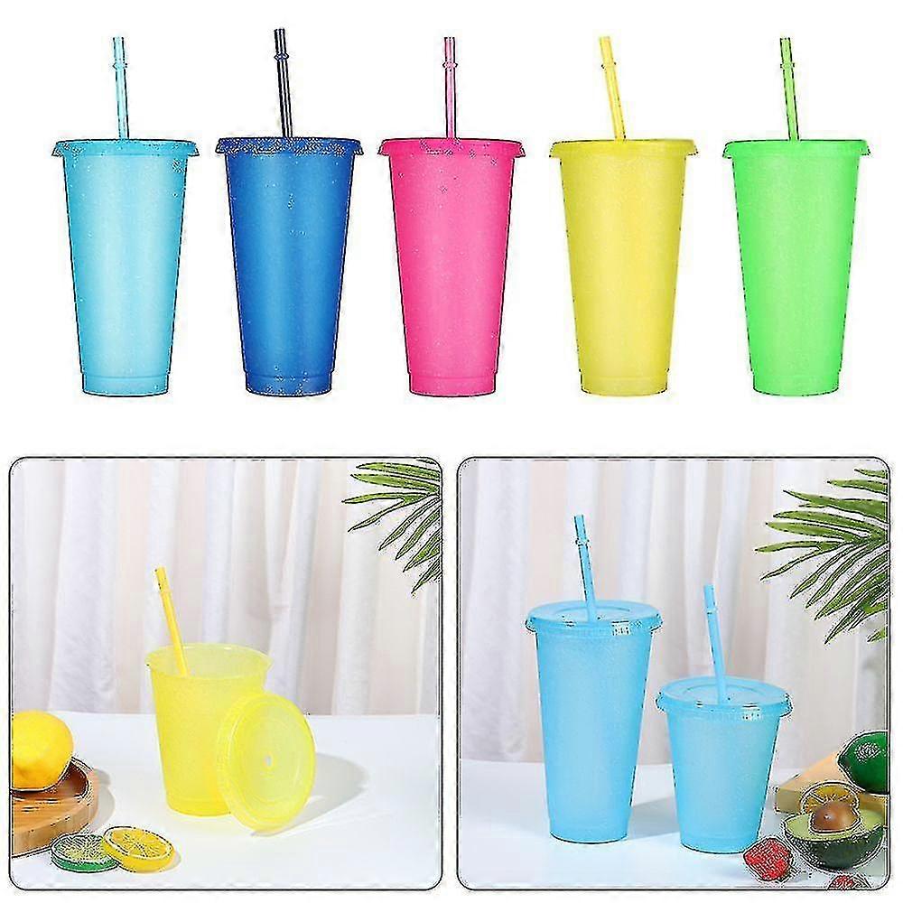 5pcs Reusable Flash Powder Water Cup With Straws Lid 480/700ml Outdoor Straw Cup