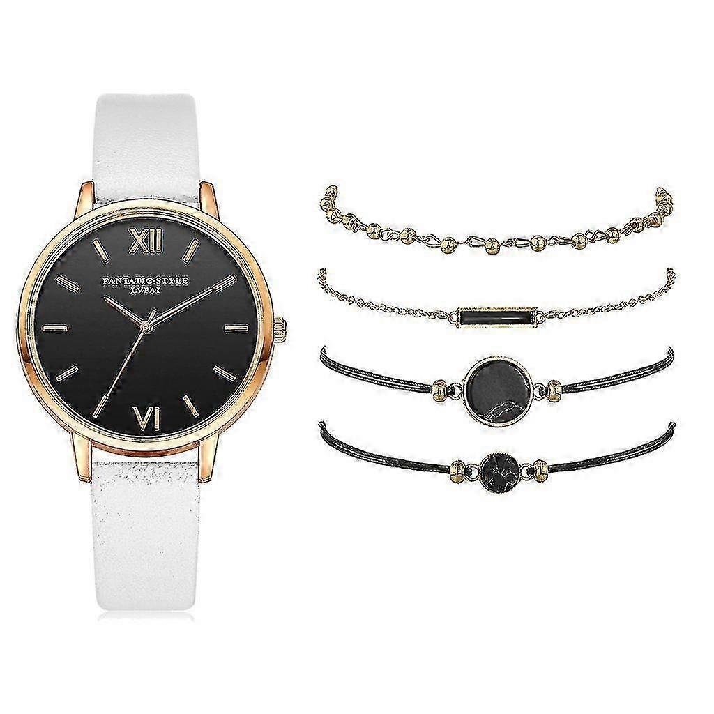 5pcs/set Fashion Ladies Watch Top Style Luxury Analog Quartz Leather Strap Wrist Watch Ladies Dress Watch Black Watch Set
