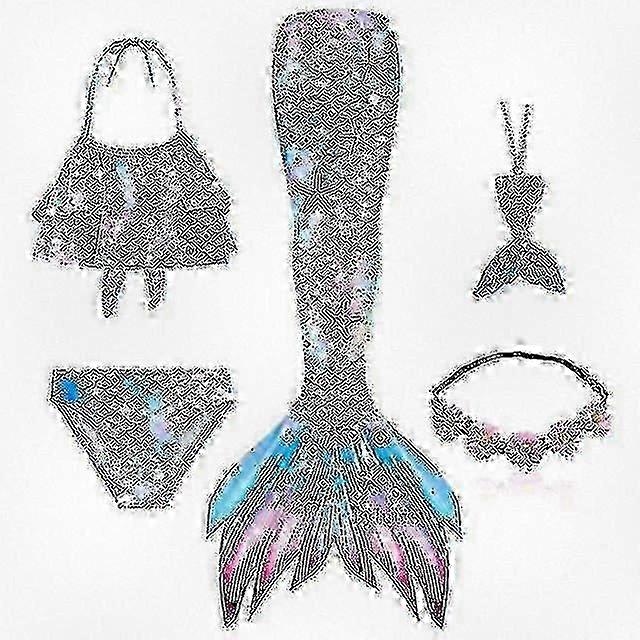 5pcs/set Girls Mermaid Tail Swimsuit Children's Fantasy Beach Bikini Costume Suitable for a Certain Brand Ariel Cosplay