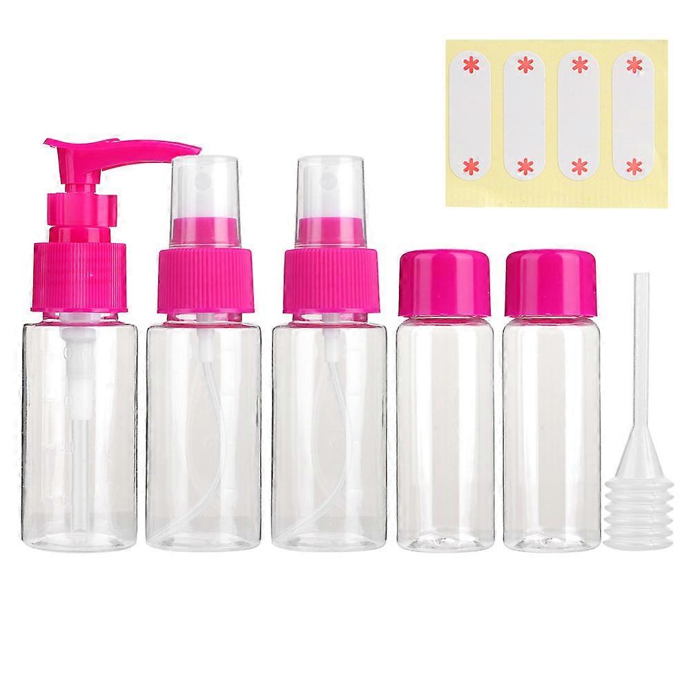 5pcs/Set Portable Reusable Empty Makeup Spray Bottle Lotion Cream Container Kit (Rose Red)