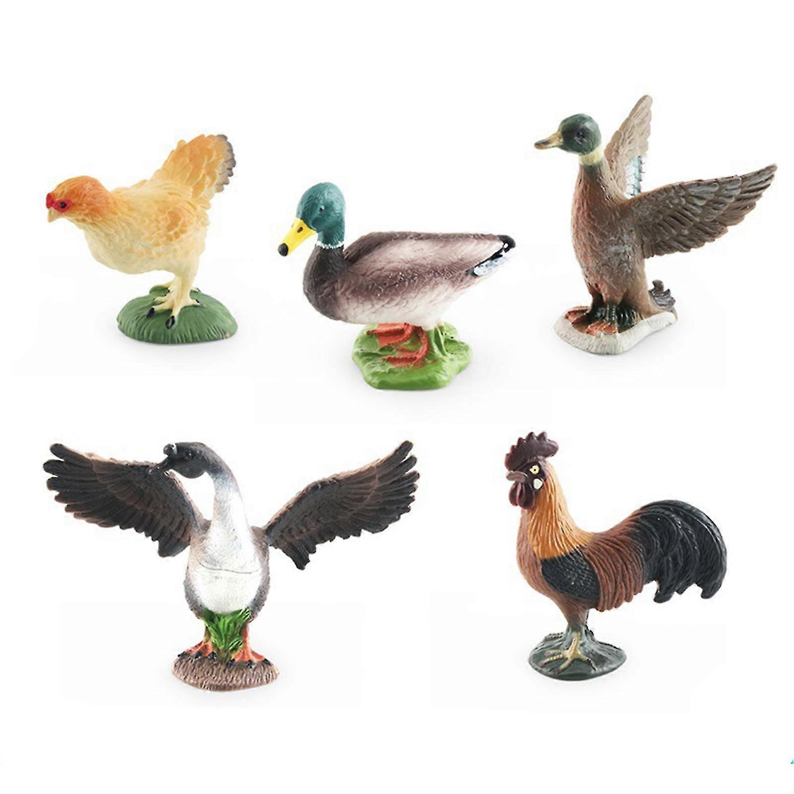 5pcs/set Mini Poultry Animals Model Toys Creative And Realistic Chicken Duck Goose Action Figures For Hom