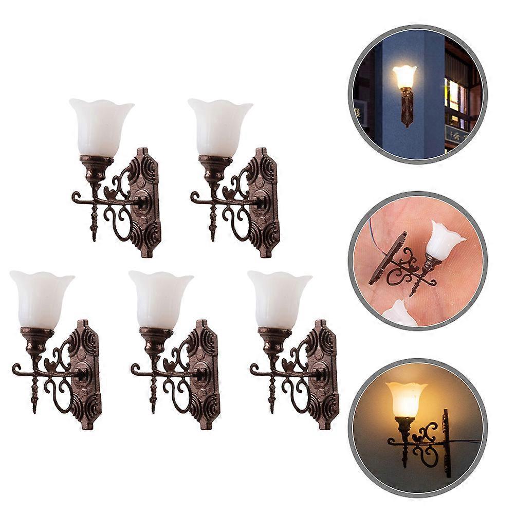 Mini Wall Lamp Model for Home Use Dark Red Stainless Steel and ABS Material 5 Pieces
