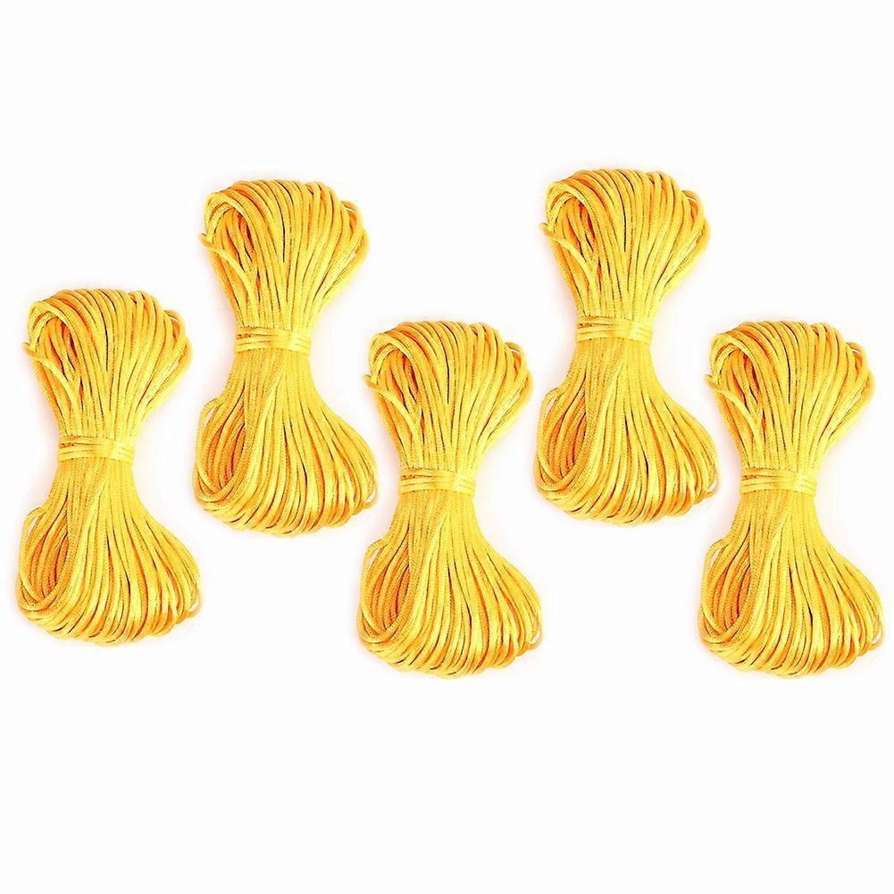 5 Pcs Braided Cord 2mm x 20yard Polyester Braid Rope for DIY Jewelry Making(Yellow)