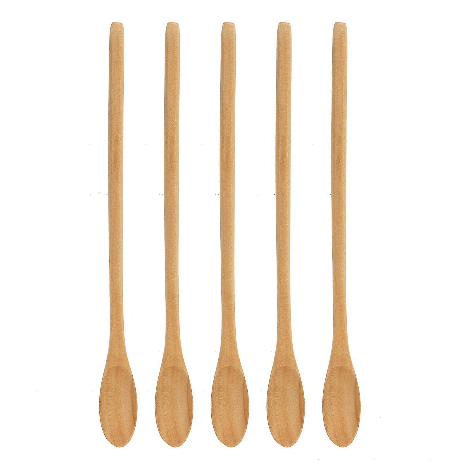 5pcs Wooden Spoons Oval Lightweight Comfortable Grip Long Handle Spoons Set for Coffee Tea Sugar Stirring
