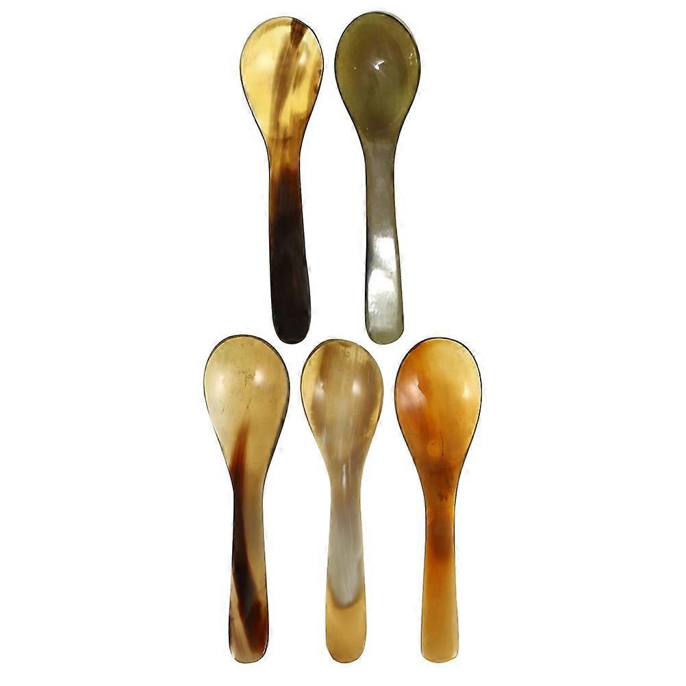 5Pcs Natural Ox Horn Spoons Coffee Spoons Mixing Spoons Ice Cream Spoons Kitchen Dessert Spoons