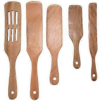 5pcs Wooden Spatula Set Wood Spoons For Cooking, Spurtles Wood Kitchen Natural Teak Utensils Tools