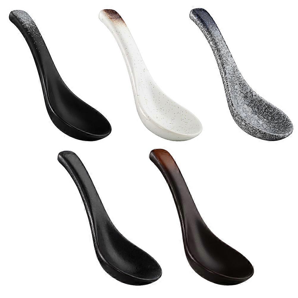 5pcs Ceramic Ramen Soup Spoons – Premium Lightweight Kitchen Tableware for Daily Food Serving, Easy to Clean and Store