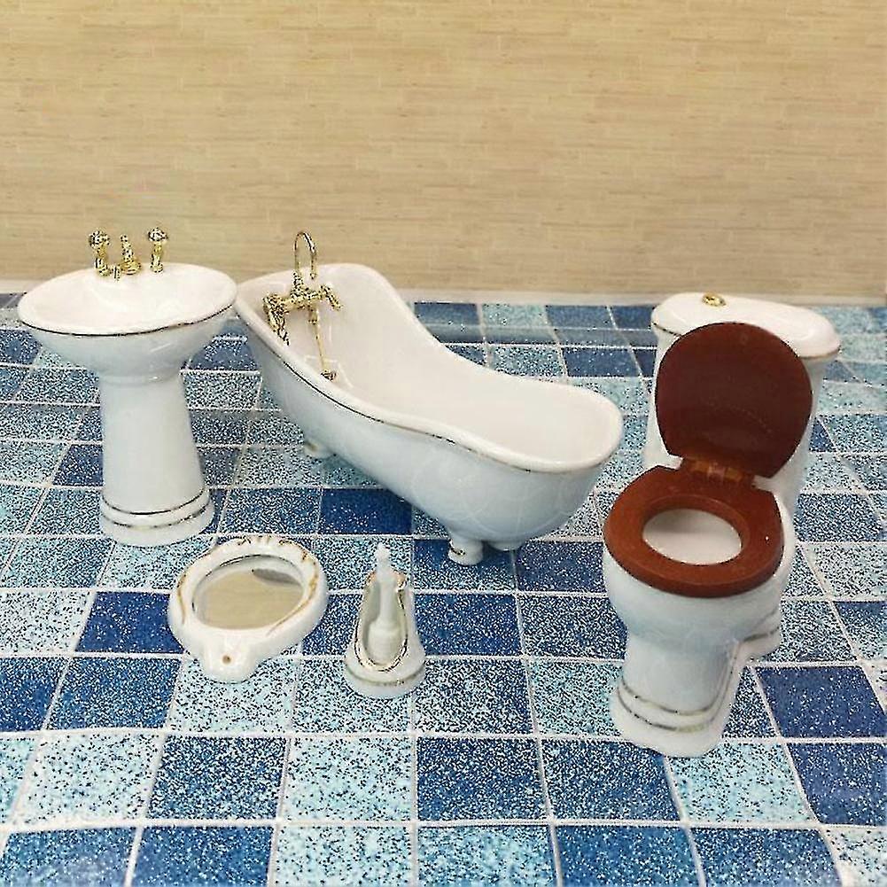 5pcs 1/12 Dollhouse Mini Bathtub Toilet Mirror Basin Bathroom Furniture Model Set
