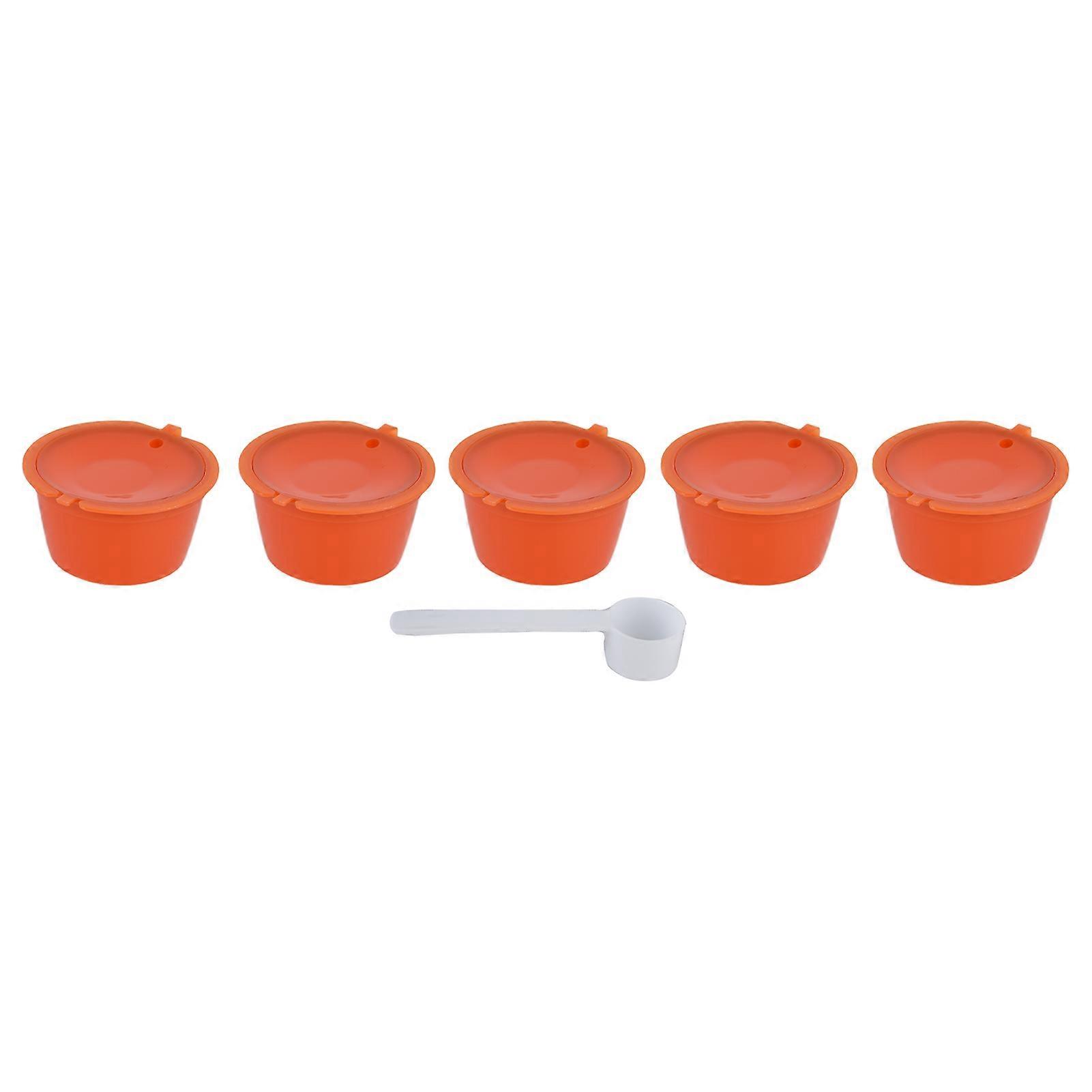 5Pcs 50ml Coffee Capsule Reusable Coffee Filter Cup with Spoon for DOLCE GUSTO Coffee MachineOrange
