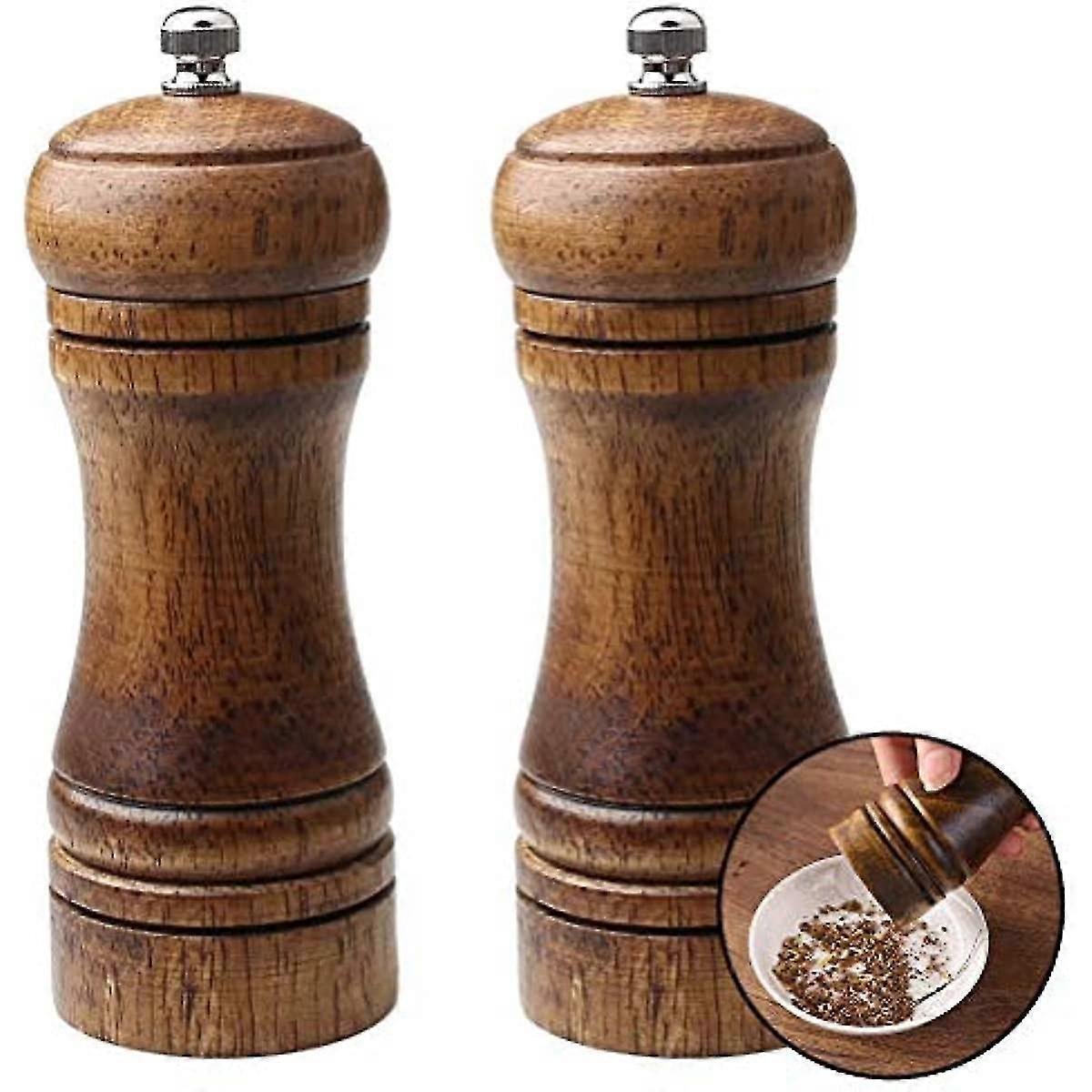 5inch*2pcs Pepper And Salt Mill, Wooden Adjustable Pepper Grinder Spice Grinder For Professional And Home Kitchen Use